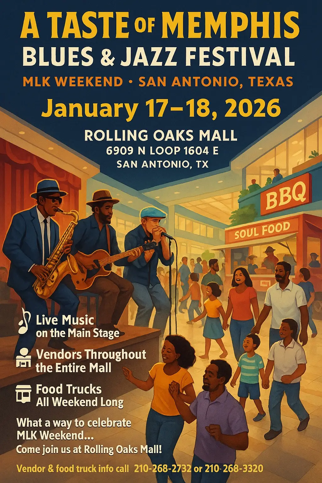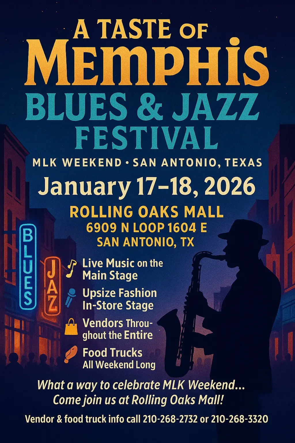 Get ready for a soulful celebration of music, flavor, and fun! On Saturday, January 17th, Rolling Oaks Mall comes alive with the smooth sounds and rich flavors of the “Taste of Memphis” Blues & Jazz Festival — a full-day experience featuring live music, delicious eats, and great vibes for the whole family.